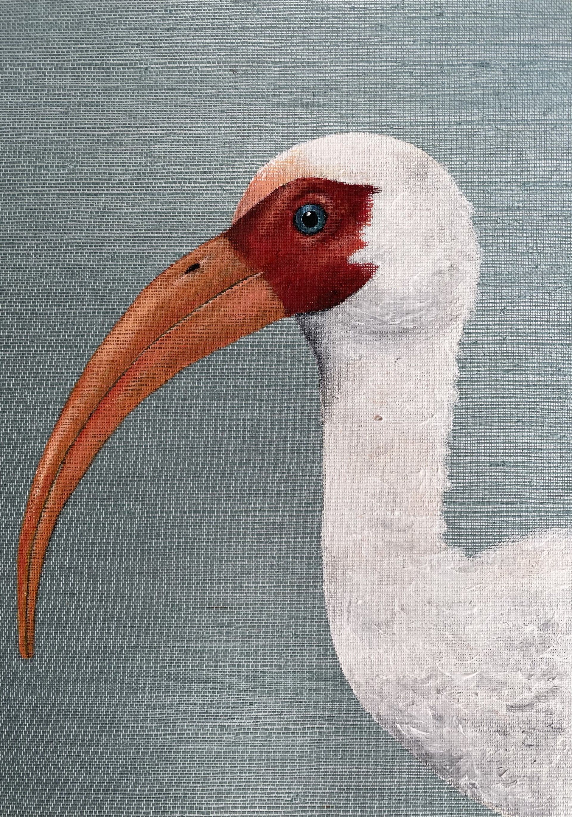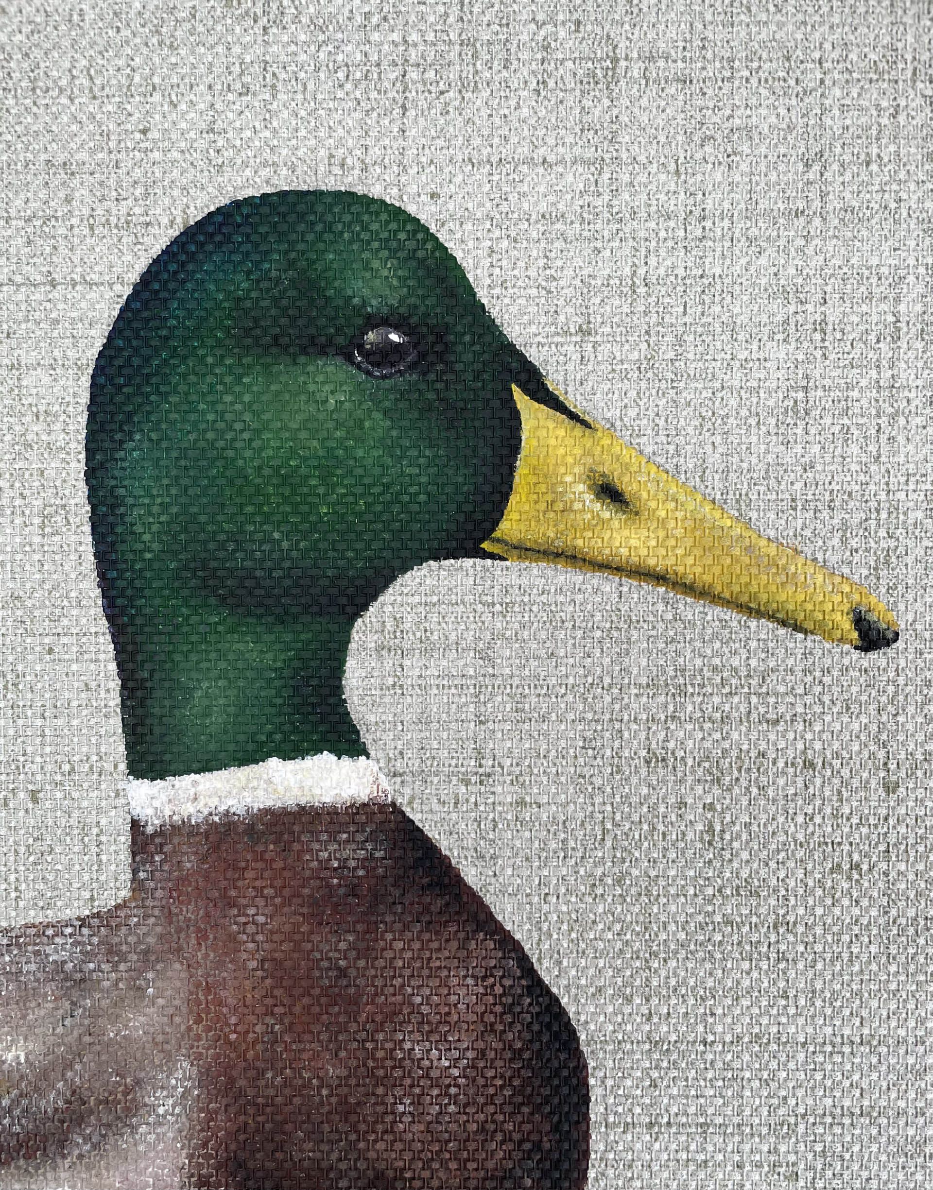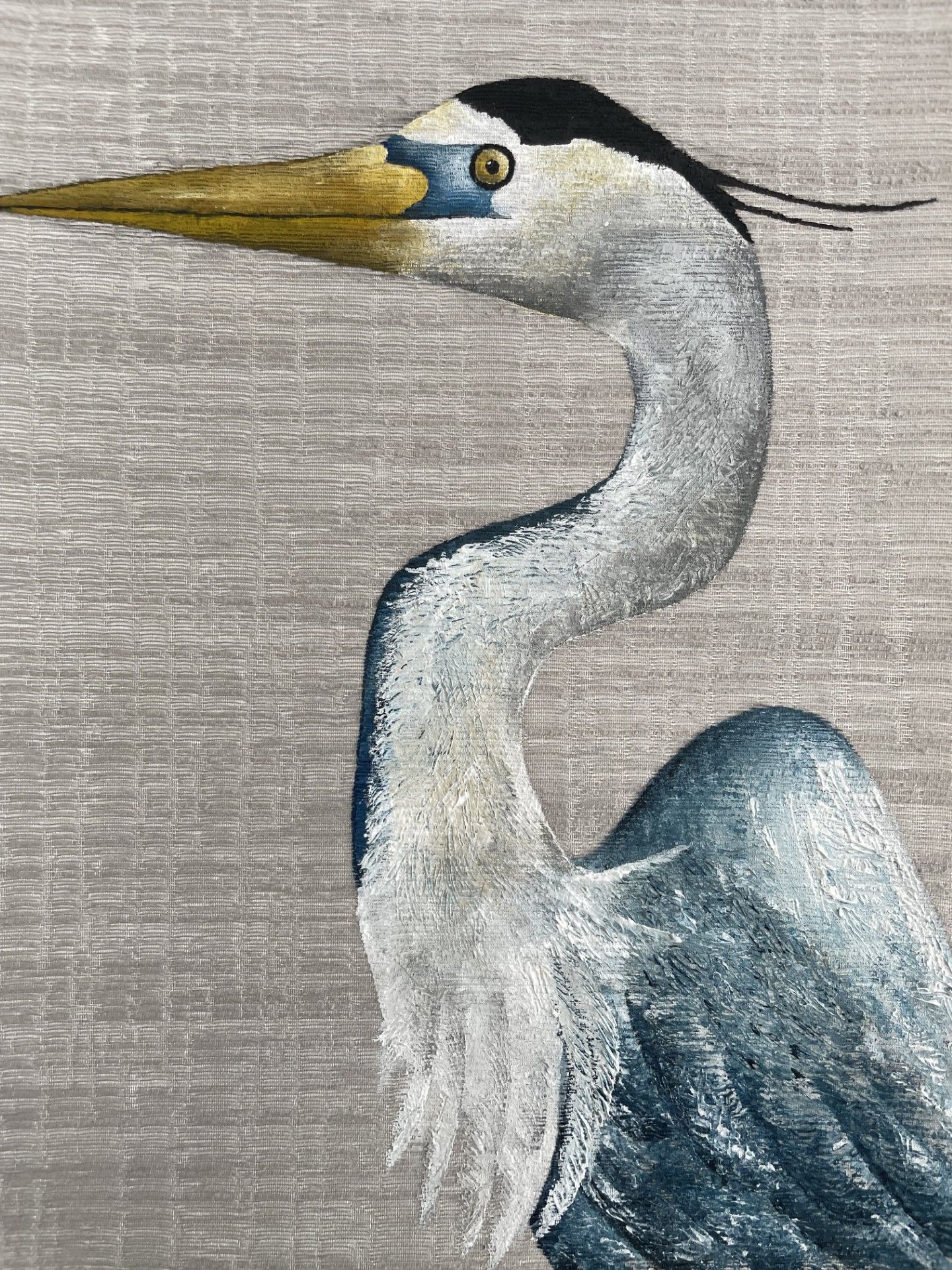 Coco's signature style uses textured backgrounds, such as linen or grasscloth, with oil or acrylic paints.