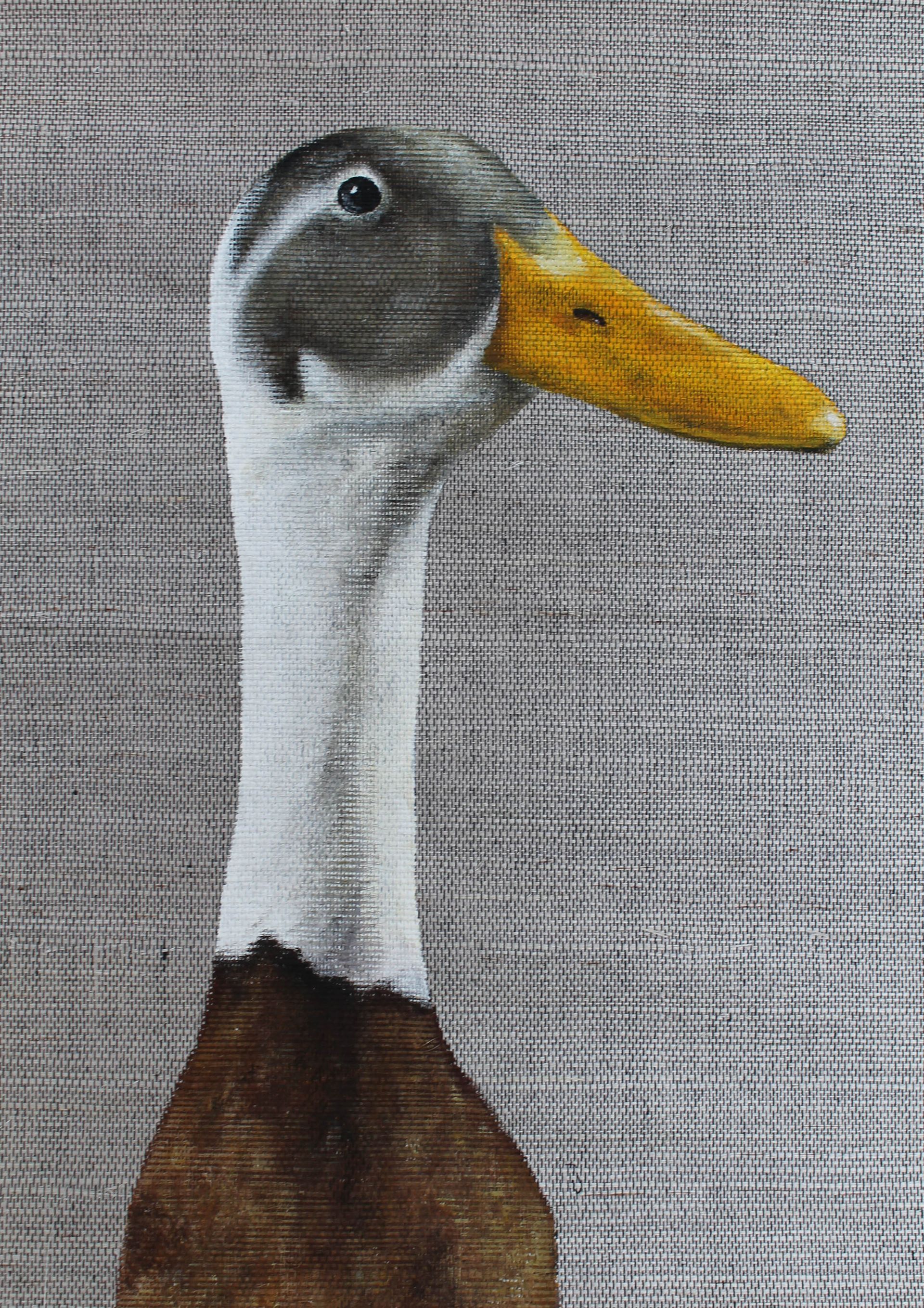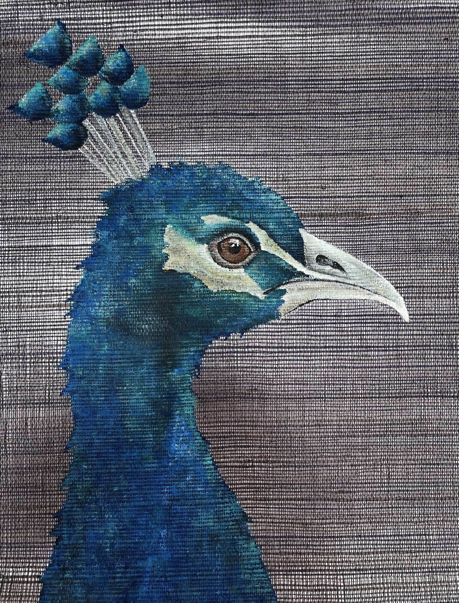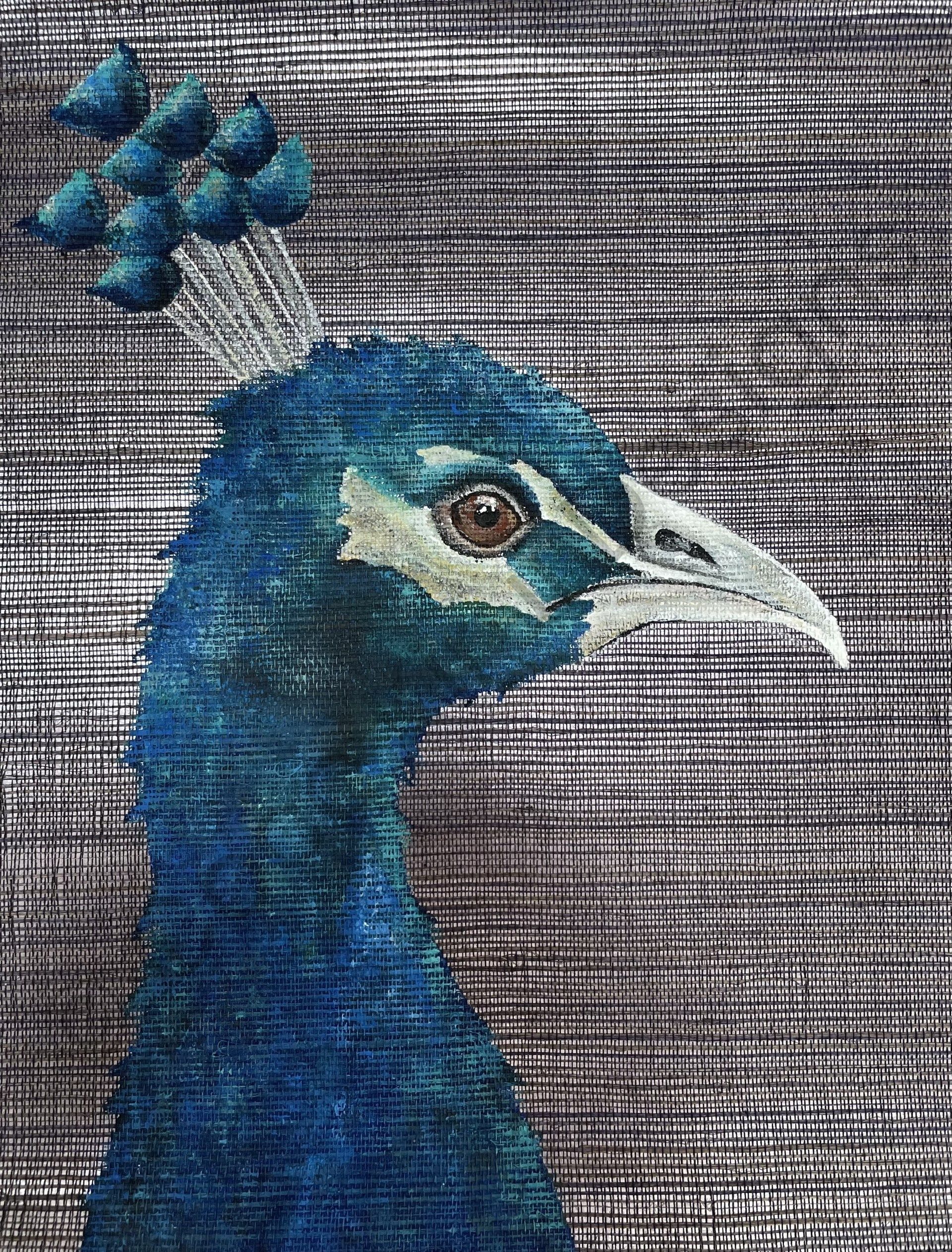Coco's signature style uses textured backgrounds, such as linen or grasscloth, with oil or acrylic paints.